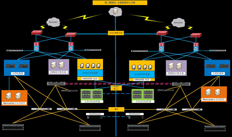 我們通過UPS不間斷電源+本地雙數(shù)據(jù)中心來解決,具體設(shè)計是在本地園區(qū)的兩個相隔不遠的大樓各建一個機房, 中間通過裸纖互聯(lián),設(shè)備分別放到兩個機房,做成雙活架構(gòu),每個機房配置足夠的UPS。