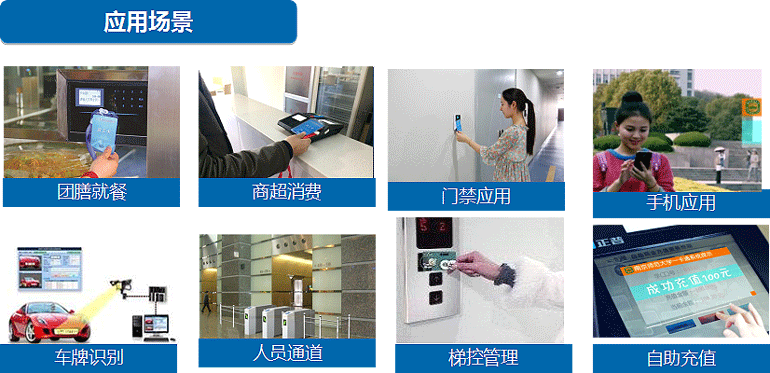 身份識(shí)別:?jiǎn)T工考勤、樓宇門(mén)禁、辦公室門(mén)鎖、會(huì)議簽到、訪客管理、車(chē)輛出入管理等