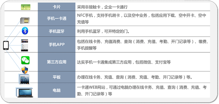 電子支付:餐廳、超市、企業(yè)班車(chē)、醫(yī)療、福利補(bǔ)助、加油站等。